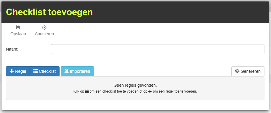 Hier kan je de cecklist selecteren die je eerder gemaakt hebt.