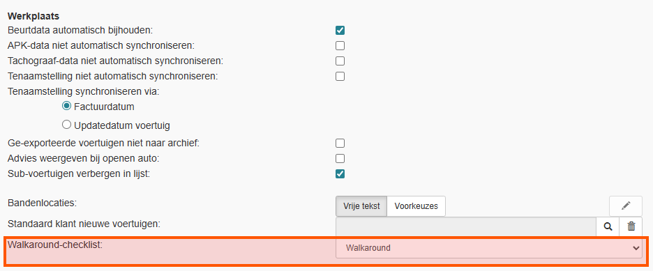 Daarna dien je de checklist voor de walkaroud nog goed te zetten in Fleetmate.