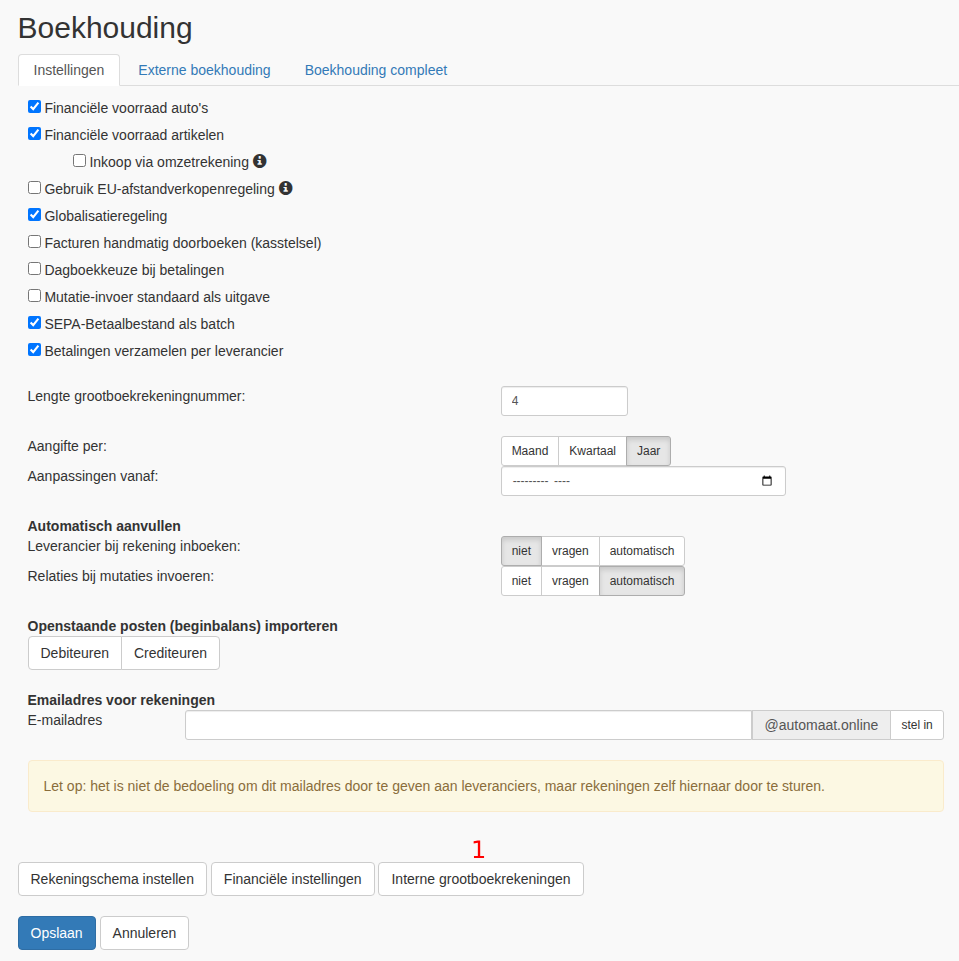 Als je grootboeken hier mist, dien je deze eerst in te stellen in Automaat, of in het geval van externe boekhouding in het desbetreffende boekhoudpakket.